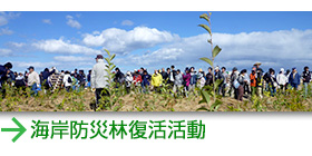 東日本大震災の津波で失われた海岸防災林の復活活動に取り組んでいます。