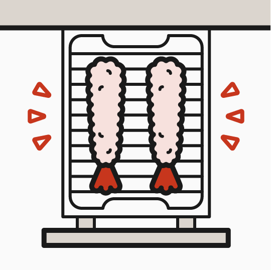 フライなどを温め直す時は、グリルを活用すればより便利です。中温で加熱すれば焦がすことなく、揚げたてのような衣に仕上がります(冷凍品でもOK)。