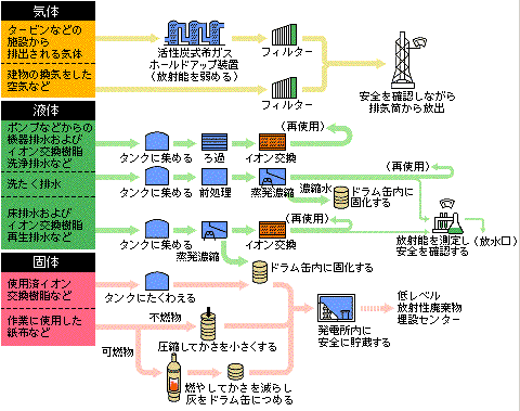 原子炉建屋、タービン建屋で発生した液体・気体・固体の廃棄物(放射性廃棄物)を処理する建物です。