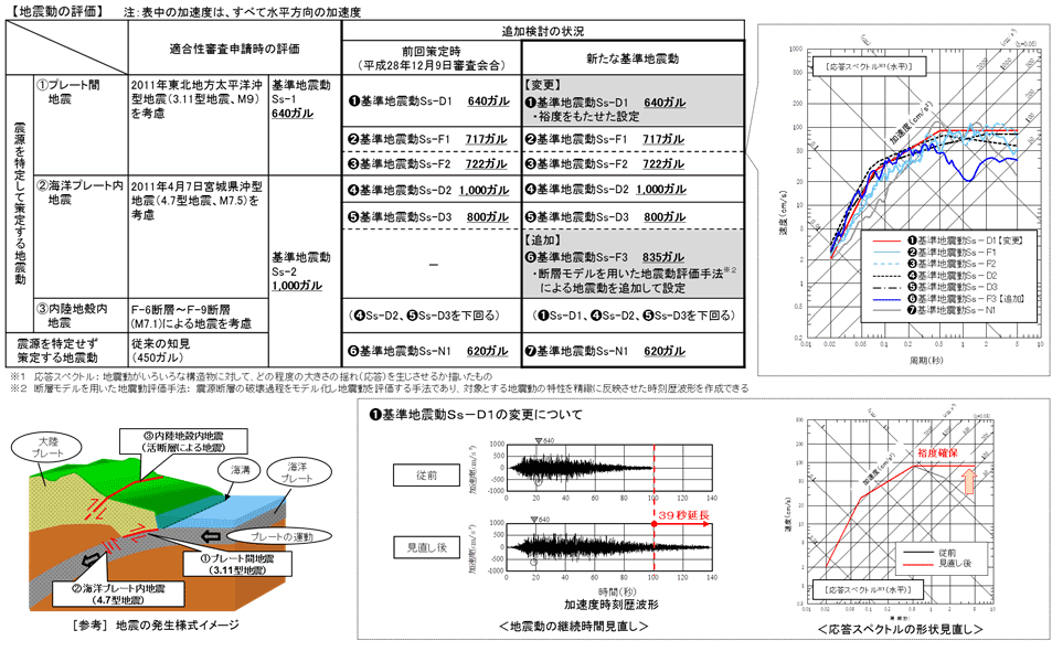 基準地震動 原子力発電所の耐震設計において基準とする地震動であり、敷地周辺において発生する可能性がある最大の地震の揺れの強さを示すもの。 海洋プレート内地震 大陸プレートに沈み込む(沈み込んだ)海洋プレート内で発生する地震。 (提出資料)