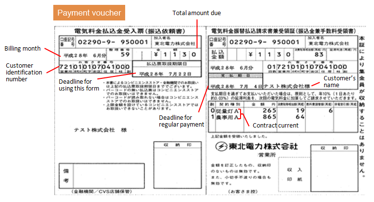 This is a means of payment by a voucher delivered from our company. You can pay by using this voucher at your nearest bank, post office, or convenience store that accepts our bills.