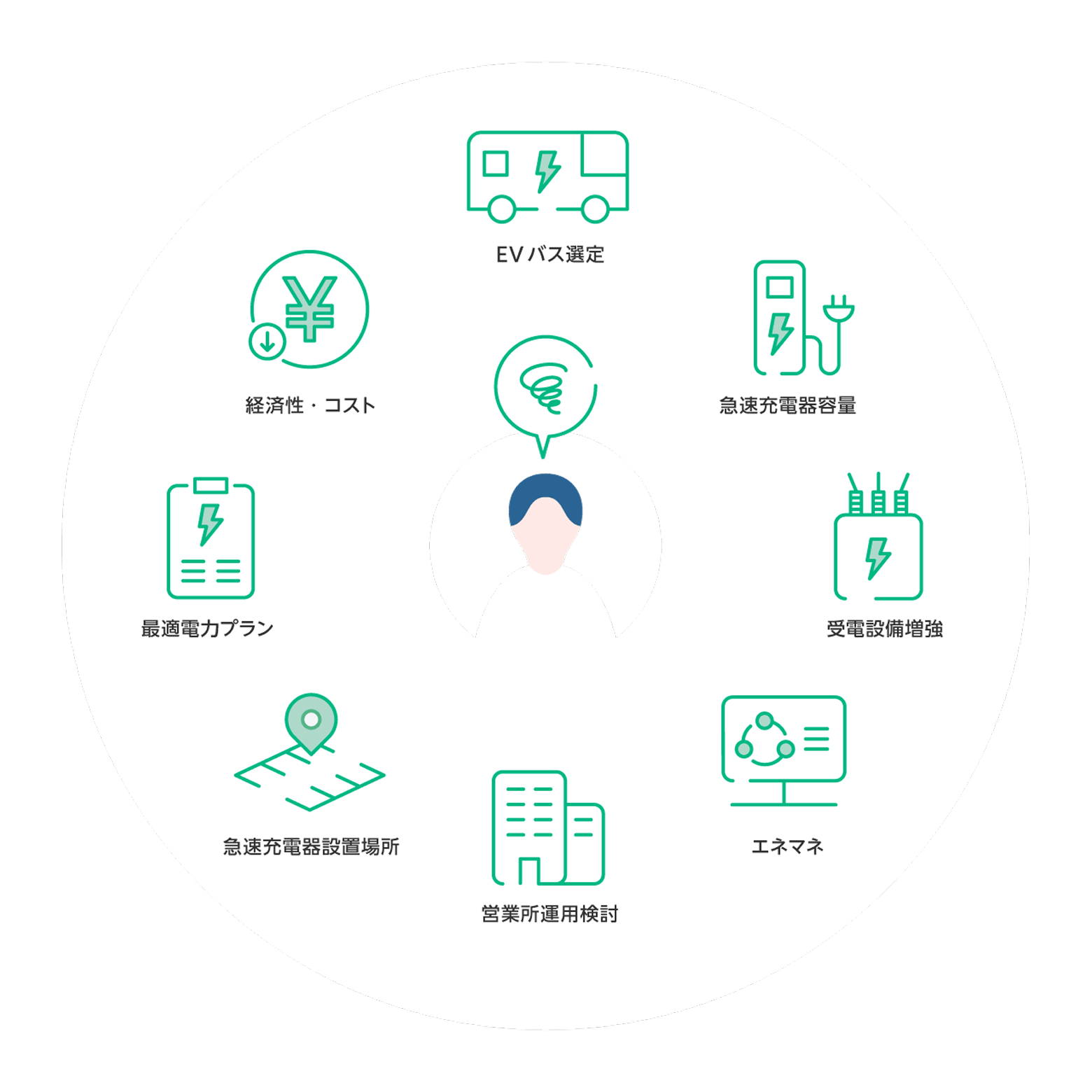 クリーンでエコなEVバスの運行に注力できる環境を提供します。