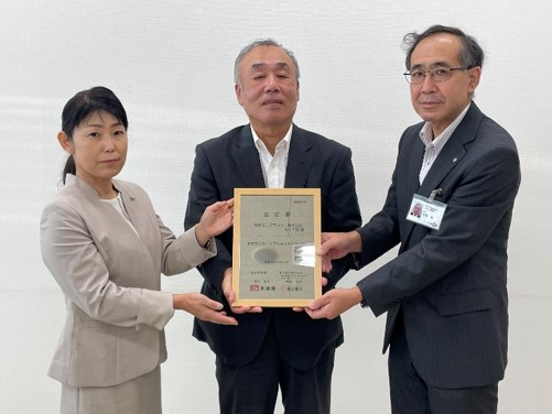 このたび、秋田エコプラッシュ株式会社の「本社工場」(秋田県能代市)に、地元秋田のCO2を排出しない電気が供給開始されることを記念し、9月7日、同社において認証書を交付いたしました。