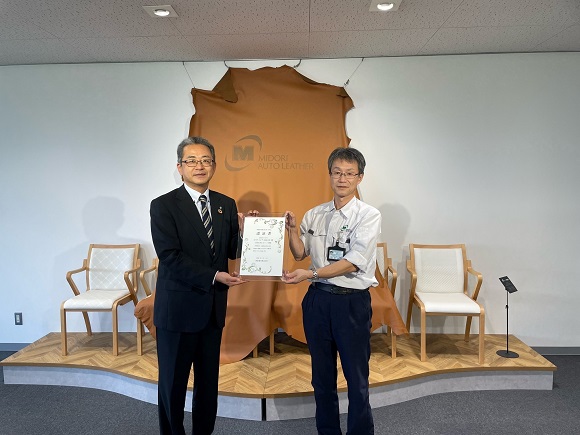 このたび、ミドリオートレザー株式会社(山形県山形市)において、本メニューをご採用いただき、CO2排出量ゼロの電気が供給開始されたことを記念し、2022年9月6日に認証書を交付いたしました。