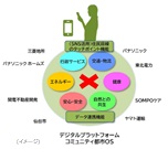 パナソニック システムソリューションズ ジャパンを中心に、まちのオペレーションシステムである「コミュニティ都市OS」を開発・実装します。SNSアプリを活用した住民目線のタッチポイントで、民間サービスを地域単位で一元的に提供すると共に、エネルギー、交通・物流などの分野を横断した「サービス連携機能」及び「データ活用機能」により、地域に根差した魅力あるまちづくりに貢献します。 |