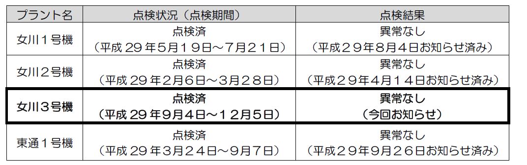 なお、女川原子力発電所1、2号機および東通原子力発電所1号機の中央制御室換気空調系ダクトの点検結果については、原子力規制庁に報告済みであり、今回の女川原子力発電所3号機の報告をもって、本指示に基づく点検調査は終了となります。
