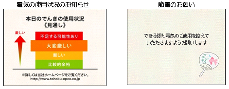 当社では、7月1日(金)より、月曜から金曜の午前11時の時間帯に、当社管内7県の民放テレビ局を通じて、日々の需給状況をお知らせいたします。