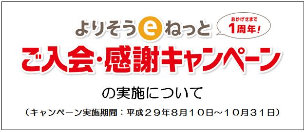当社は、Webサービス「よりそうeねっと※」をさらに多くのお客さまにご利用いただくとともに、これまで会員登録いただいたお客さまへの感謝の気持ちを込めて、「よりそうeねっと ご入会・感謝キャンペーン」を実施いたします。