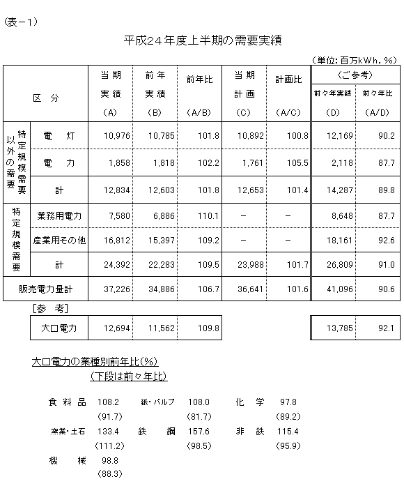 なお、東日本大震災の影響で、前年度は販売電力量が大幅に減少しておりますので、ご参考として前々年度との比較も表−1に掲載しております。