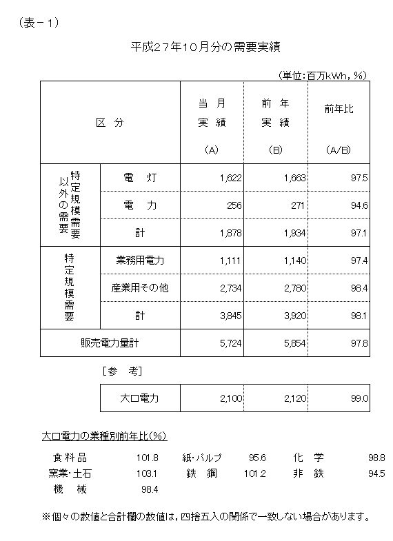 特定規模需要の合計では、対前年比98.1%の実績となりました。