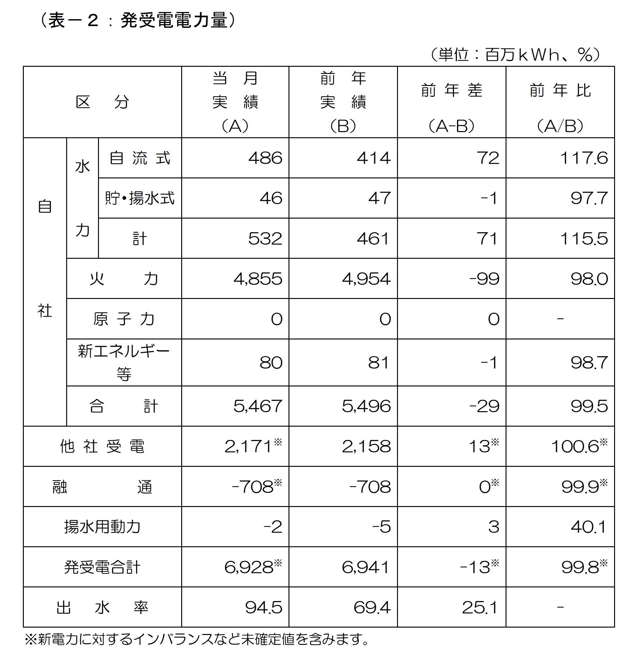 太陽光が増加した一方で他社火力は減少したことなどから、他社受電合計では、前年並みの21億7,100万kWhとなりました。