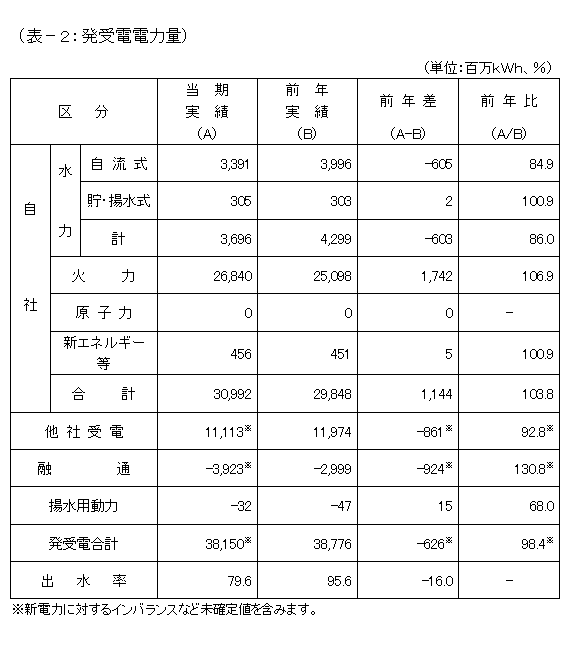 平成28年度上半期の発受電電力量の合計は、381億5,000万kWh、対前年比98.4%の実績となり、前年実績を下回りました。