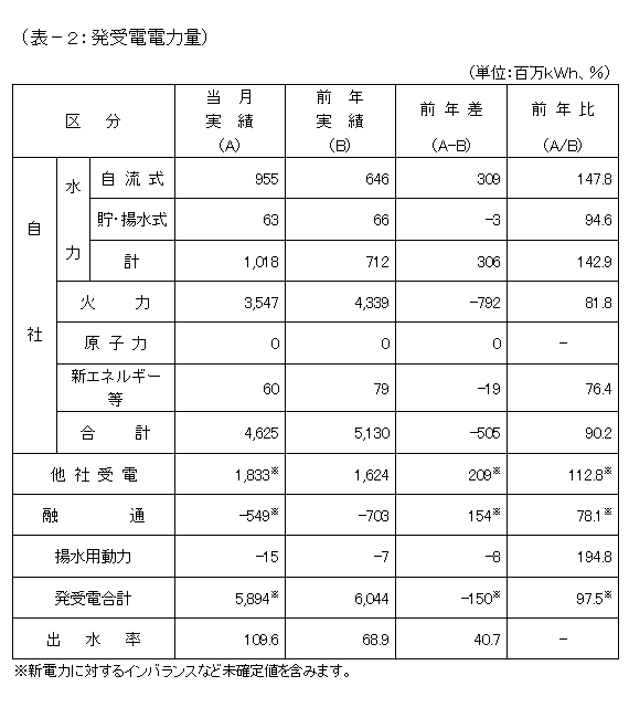 他社火力の運転状況の違いなどから、他社受電合計では、前年を2億900万kWh上回る18億3,300万kWhとなりました。