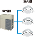 1台の室外機で複数の室内機を設置できるエアコンで、様々な用途の建物で使用されています。室内機が各室で個別運転できるので、制御性や省エネ性に優れています。最近では、配管の自由度が増し、10,000m²を超える大規模なビルでも採用されています。また、室内機単位で冷房と暖房が切り替えられる冷暖同時空調システムもあります。
