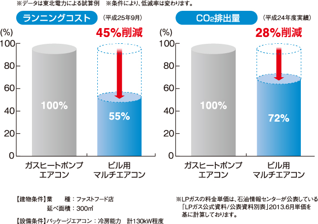 空調機の更新のサイクルは概ね15年程度といわれています。メーカー各社によるヒートポンプ技術の改良によって、15年前の機器と比べて機器効率(COP)は大幅に向上しており、機器更新により省エネに大きく寄与することができます。さらに機器更新の際は、既設配管を再利用できるリプレース機器があり、導入コストと工期を短縮することができます。