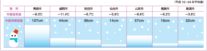 各地域の年最低気温と年最深積雪量