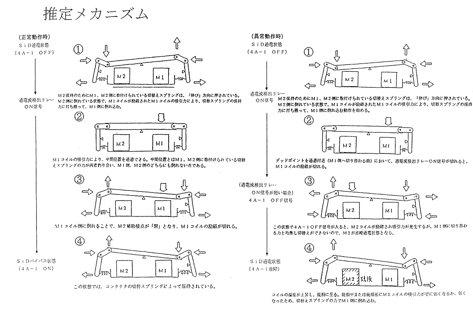 平成12年3月1日 2月24日、女川原子力発電所1号機(沸騰水型原子炉、定格出力52万4千kW)は定期検査中のところ、制御建屋地下1階直流電源A室において、 直流電源を供給する充電器装置の盤内に設けられたスイッチ動作用のコイルを焼損する事象が発生いたしました。なお、本事象において、環境への放射能の影響、ECCSの作動はありませんでした。(2月24日にお知らせ済。) 事象の原因について調査した結果、当該コイルへの通電が通常の状態に比べ、長い時間継続したことにより当該コイルが過熱し、 焼損に至ったものと判明いたしました。 コイルへの通電が継続した原因は、スイッチ(4A−1)の動作を命ずる信号が短かったため、 スイッチ駆動部が中間位置で停止したことによるものと判断いたしました。 このため、焼損したコイルを含むスイッチを新しいものに交換するとともに、回路上にタイマーを追加することにより、 スイッチの不要な動作を抑制するとともに、確実に動作完了するよう必要な改良を行うことといたします。 なお、本件は、法律および通達に関するトラブルではありません。 以 上 [ 参考図 ] 推定メカニズム 電磁接触器外観図 直流電源概要図 |