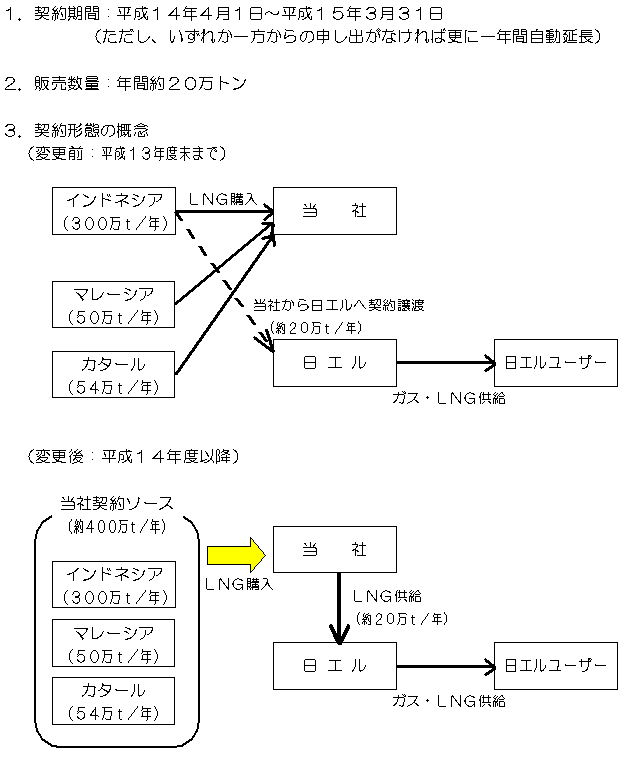 このため、当社がインドネシアのほか、マレーシア、カタールより合計で年間約400万トン※のLNGを購入している実態を踏まえ、調達方法の変更により日本海エル・エヌ・ジー鰍フ供給ソースの多様化と安定供給基盤の強化を図ることとしたものです。