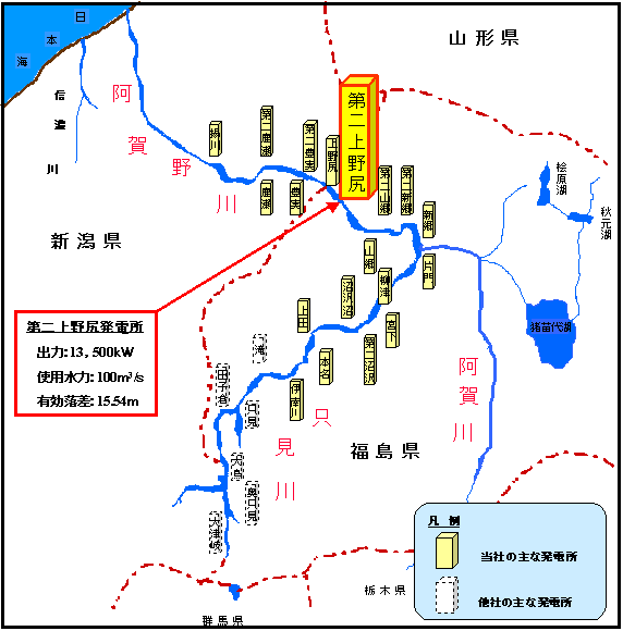 第二上野尻発電所営業運転開始後の当社の水力発電所