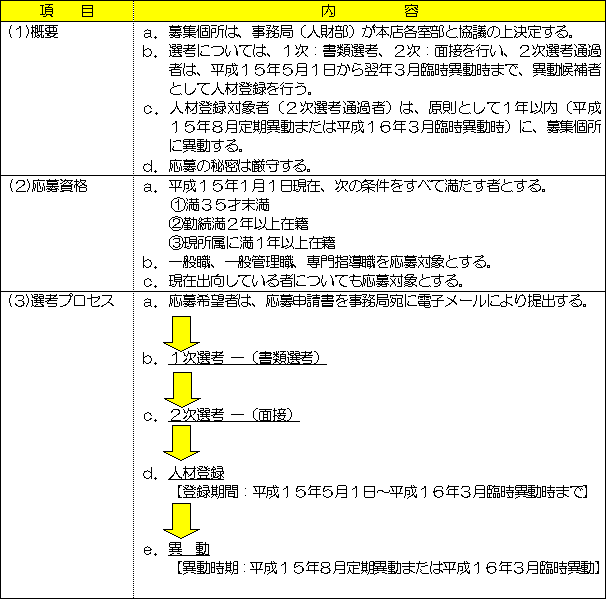 新たな社内公募制度「キャリア・デザインプログラム」の概要(平成15年度)