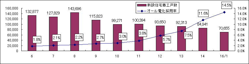 1.至近15年間のオール電化住宅の累計戸数