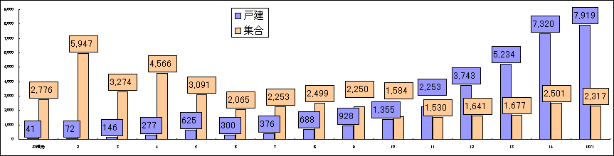【年度別累計戸数(戸建+集合)の推移】
