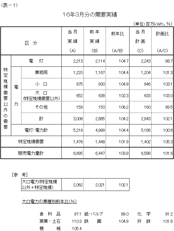 大口電力は、非鉄の電気機械向け素材や電気機械のデジタル機器向け部品の生産が引き続き高水準で推移していることなどから、対前年比102.1%の実績となりました。