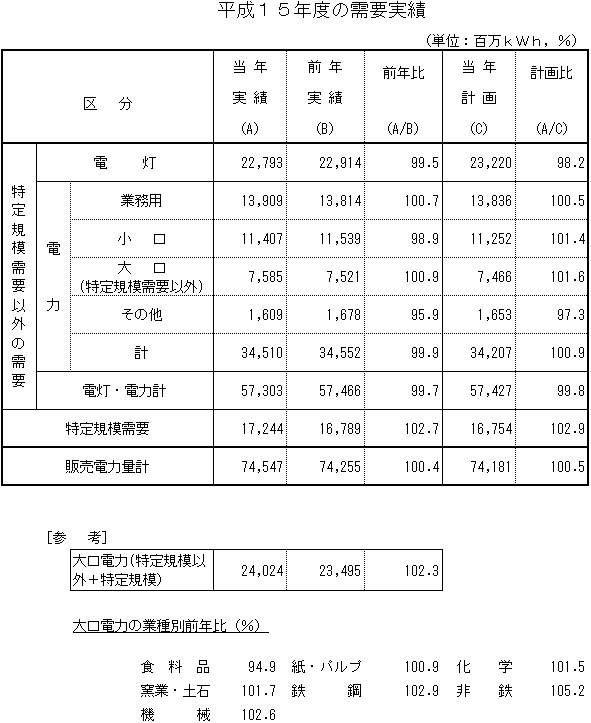 なお、平成15年度の販売電力量は、うるう年の影響もあり、平成12年度に記録した745億1,400万kWhを上回り、過去最高となりました。