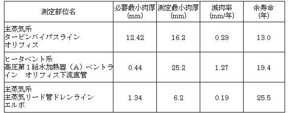 なお、平成16年9月29日にお知らせしております高圧給水加熱器ベント管の減肉事象に関連して当該箇所の点検を実施しており問題のないことを確認しております。(表−3)