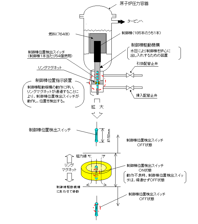 その後、点検・調査を行った結果、原因は当該制御棒にある位置検出スイッチ54個のうちの1個の動作不良と判明しました。