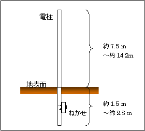 地表面から30cmの深さの個所に、専用の金物で電柱に取付けする。